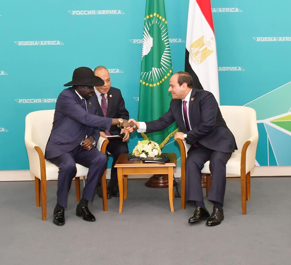 والتقى الرئيس عبد الفتاح السيسي، أيضاً مع رئيس جنوب السودان «سلفا كير»، وقال المتحدث الرسمى باسم رئاسة الجمهورية: إن الرئيس أعرب عن سعادته بلقاء رئيس جنوب السودان، مشيراً إلى حرص مصر على تطوير التعاون بين الجانبين على كل الأصعدة، لا سيما فى ضوء أهمية وعمق العلاقات التى تجمع بين البلدين الشقيقين.