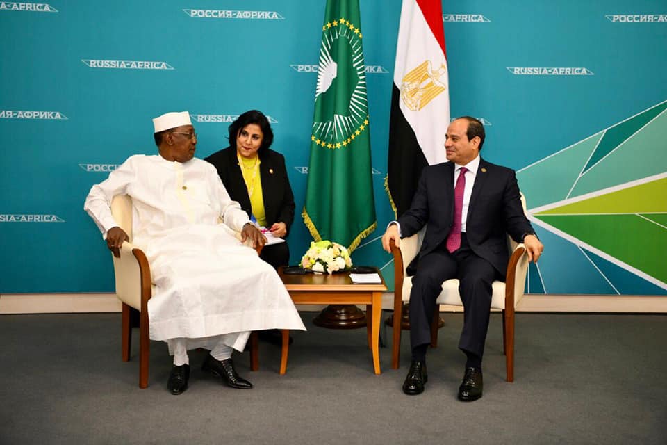 والتقى الرئيس عبد الفتاح السيسى بمدينة سوتشى مع الرئيس التشادى إدريس ديبي، وقال المتحدث الرسمى باسم رئاسة الجمهورية، إن الرئيس أكد تميز العلاقات التاريخية الوطيدة التى تجمع بين البلدين، مشيراً إلى حرص مصر على تعزيز وتطوير العلاقات مع تشاد على مختلف المستويات، أخذاً فى الاعتبار علاقة الجوار الاستراتيجى التى تجمع بين البلدين، فضلاً عن اتفاق الرؤى حول العديد من القضايا الإقليمية والدولية.