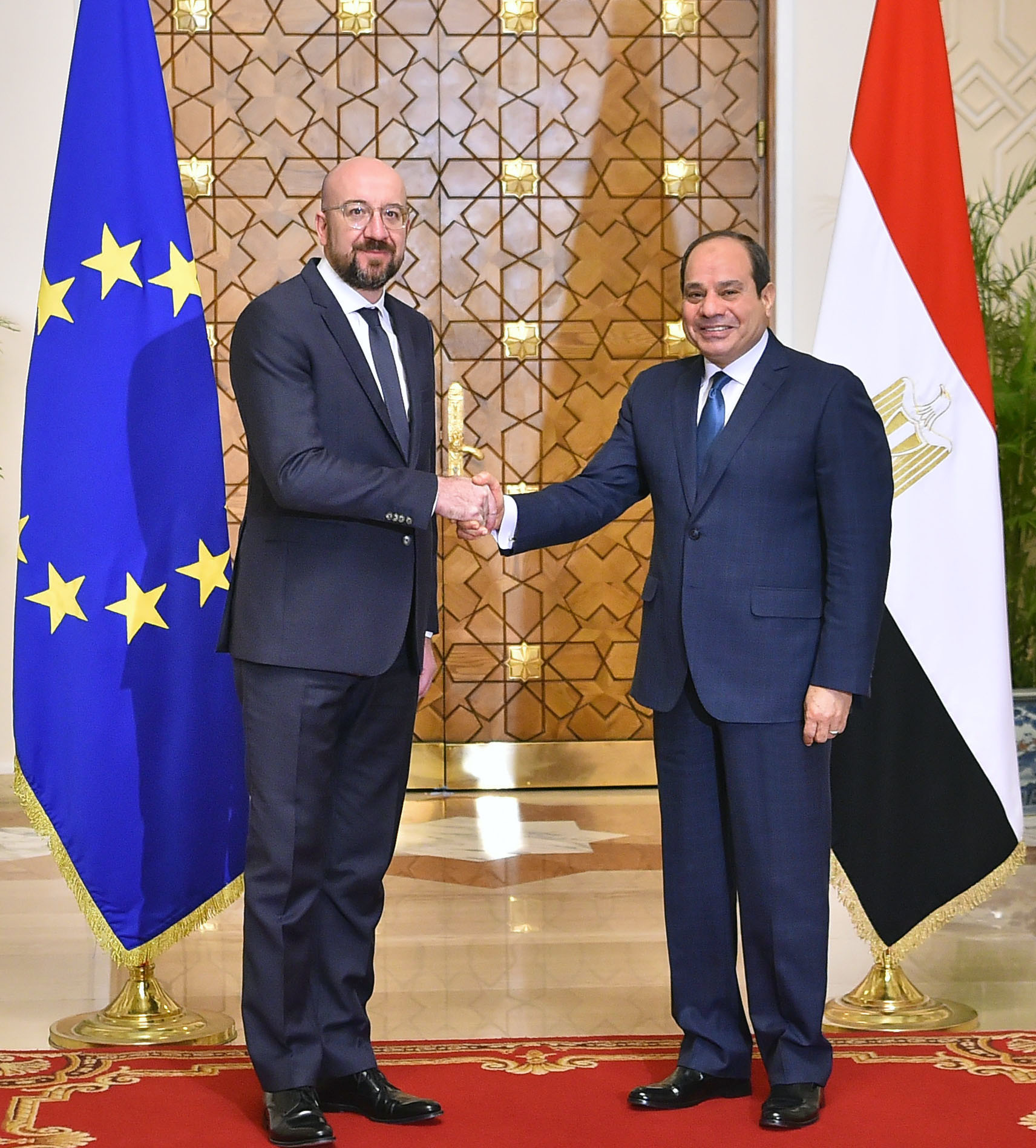 وصرح السفير بسام راضي، المتحدث الرسمي باسم رئاسة الجمهورية، بأن الرئيس رحب بشارل ميشيل في القاهرة في أول زيارة له إلى مصر عقب توليه مهام منصبه الجديد كرئيس للمجلس الأوروبي، مؤكداً سيادته مكانة الاتحاد الأوروبي في إطار السياسة الخارجية لمصر، والتي ترتكز على الاحترام والتقدير المتبادل، ليس فقط لكون الجانب الأوروبي الشريك التجاري الأول لمصر، وإنما في ضوء الروابط المتشعبة التي تجمع بين الجانبين والتحديات المشتركة التي تواجههما على ضفتي المتوسط.