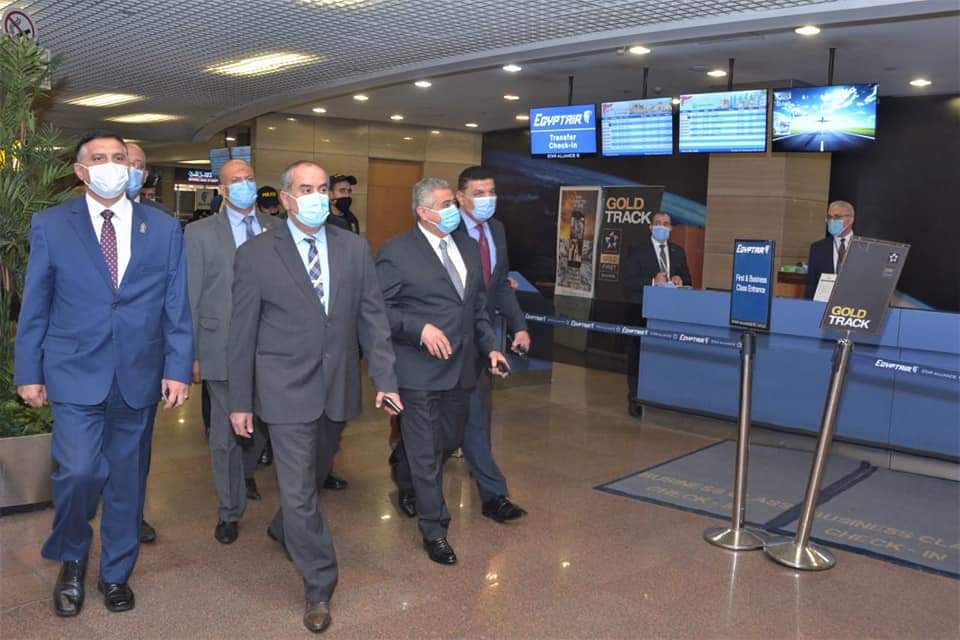 وخلال الجولة تابع الوزير الإجراءات الاحترازية والضوابط الوقائية المطبقة داخل المبني، رافق سيادته الطيار منتصر مناع نائب وزير الطيران و اللواء طارق نصير مساعد الوزير و المحاسب مجدي إسحاق رئيس مجلس إدارة شركة ميناء القاهرة الجوي .
