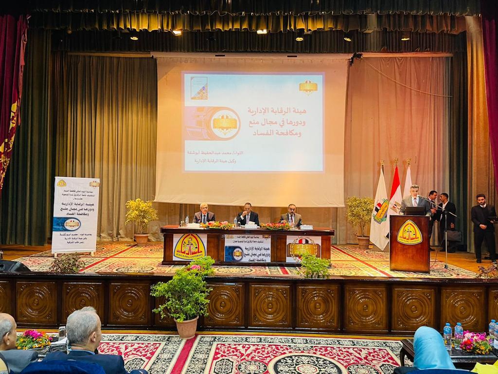 تحت رعاية ا.د خالد الدرندلي رئيس الجامعة و ا.د ممدوح غراب محافظ الشرقية واللواء محمد عبد الحفيظ أبو شقة وكيل هيئة الرقابة الإدارية ورئيس مكتب هيئة الرقابة الإدارية بالشرقية، استضافت جامعة الزقازيق الندوة التوعوية التي تقيمها هيئة الرقابة الإدارية بمناسبة اليوم العالمي لمكافحة الفساد بعنوان: “هيئة الرقابة الإدارية ودورها في مجال منع ومكافحة الفساد” بحضور السادة نواب رئيس الجامعة ونواب محافظ الشرقية وممثل هيئة الرقابة الإدارية بالشرقية والسادة عمداء ووكلاء الكليات وأعضاء هيئة التدريس والهيئة المعاونة وأمين عام الجامعة والأمناء المساعدين ومديري الإدارات بالجامعة والكليات ومجالس اتحاد الطلاب.