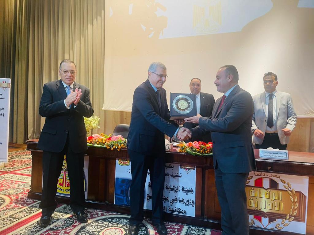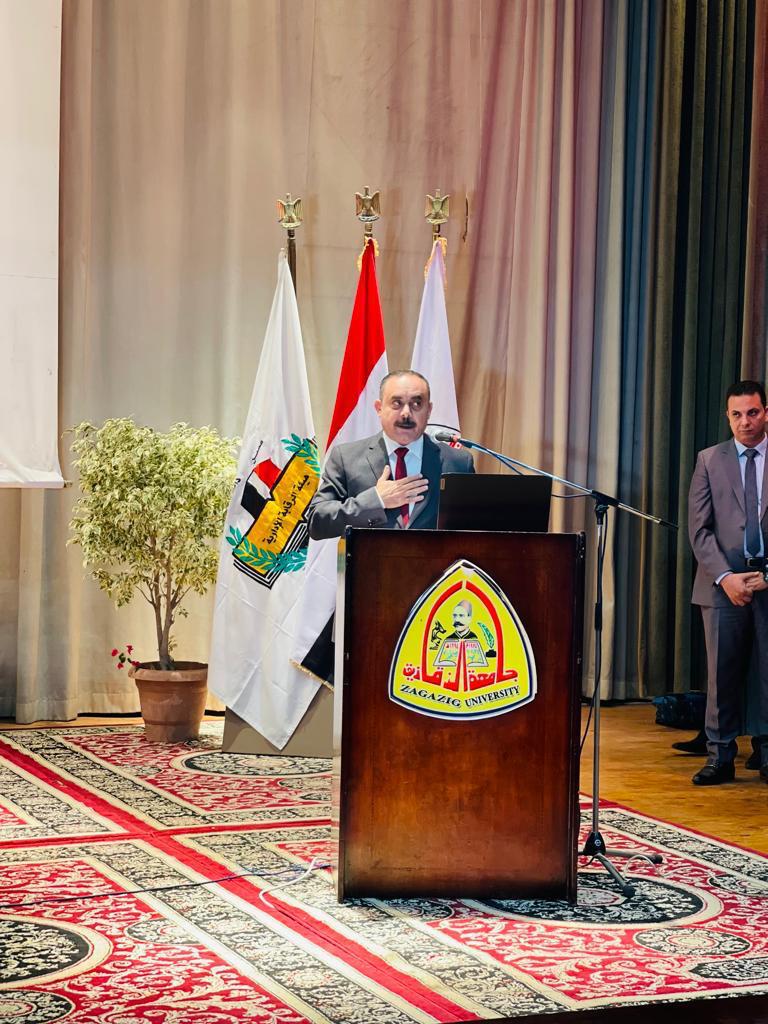وخلال كلمته رحب رئيس الجامعة بالأستاذ الدكتور ممدوح غراب محافظ الشرقية والسيد اللواء محمد عبد الحفيظ أبو شقة وكيل هيئة الرقابة الإدارية، كما أشاد سيادته بالآداء المتميز لهيئة الرقابة الإدارية والدور العظيم الذي قدمته علي مدار نصف قرن من الزمان، حيث أكد سيادته علي أن ما حققته مصر في مجال القضاء علي الفساد لم يكن يتم لولا جهود الهيئة في مجال مكافحة الفساد في ظل القيادة السياسية الحكيمة لفخامة رئيس الجمهورية عبد الفتاح السيسي كما وجه ا.د ممدوح غراب محافظ الشرقية خالص الشكر والاعتزاز لهيئة الرقابة الإدارية وجامعة الزقازيق علي دعوته لحضور الإحتفالية حيث أوضح سيادته أن الهدف من إنشاء هذه الهيئة هو دور رقابي وإستشاري مكمل في ضوء مشروعات التنمية المستدامة للدولة في حين أن مصر هي سباقة في إنشاء صروح وهيئات ذات دور فعال مثل هيئة الرقابة الإدارية وأن دور المحافظة يتمثل في شراكة كاملة مع كافة هيئات وأجهزة الدولة لمحاربة الفساد.