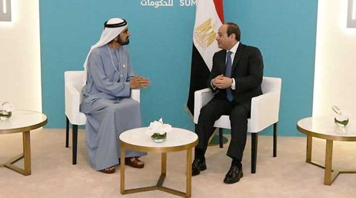 التقى الرئيس عبد الفتاح السيسي مع الشيخ محمد بن راشد آل مكتوم، نائب رئيس دولة الإمارات العربية المتحدة رئيس مجلس الوزراء حاكم إمارة دبي.