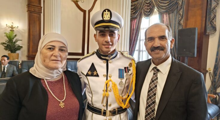 فى البداية، يقول ملازم بحرى تحت الاختبار، حسن الصيفى، أول الكلية البحرية: أود أن أشكر أعضاء هيئة التدريس، بداية من مدير الأكاديمية إلى قائد لواء الطلبة، وضباط الكلية؛ لأن توجيهاتهم أحدثت فارقا كبيرا فى شخصيتى على المستوى الإنسانى والتعليمي، وأقول للشباب إن الانتماء للعسكرية شرف لا يضاهيه شرف.