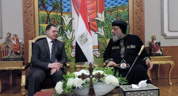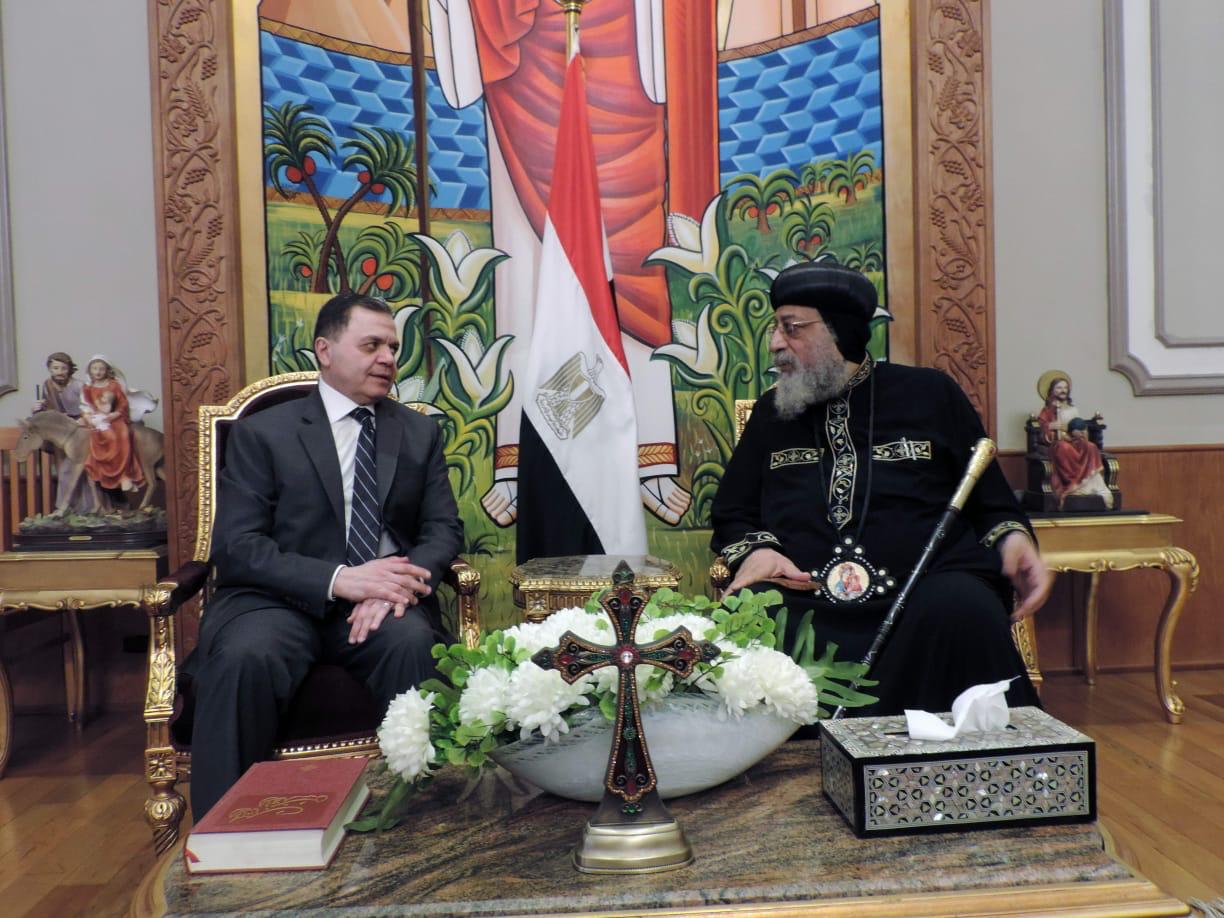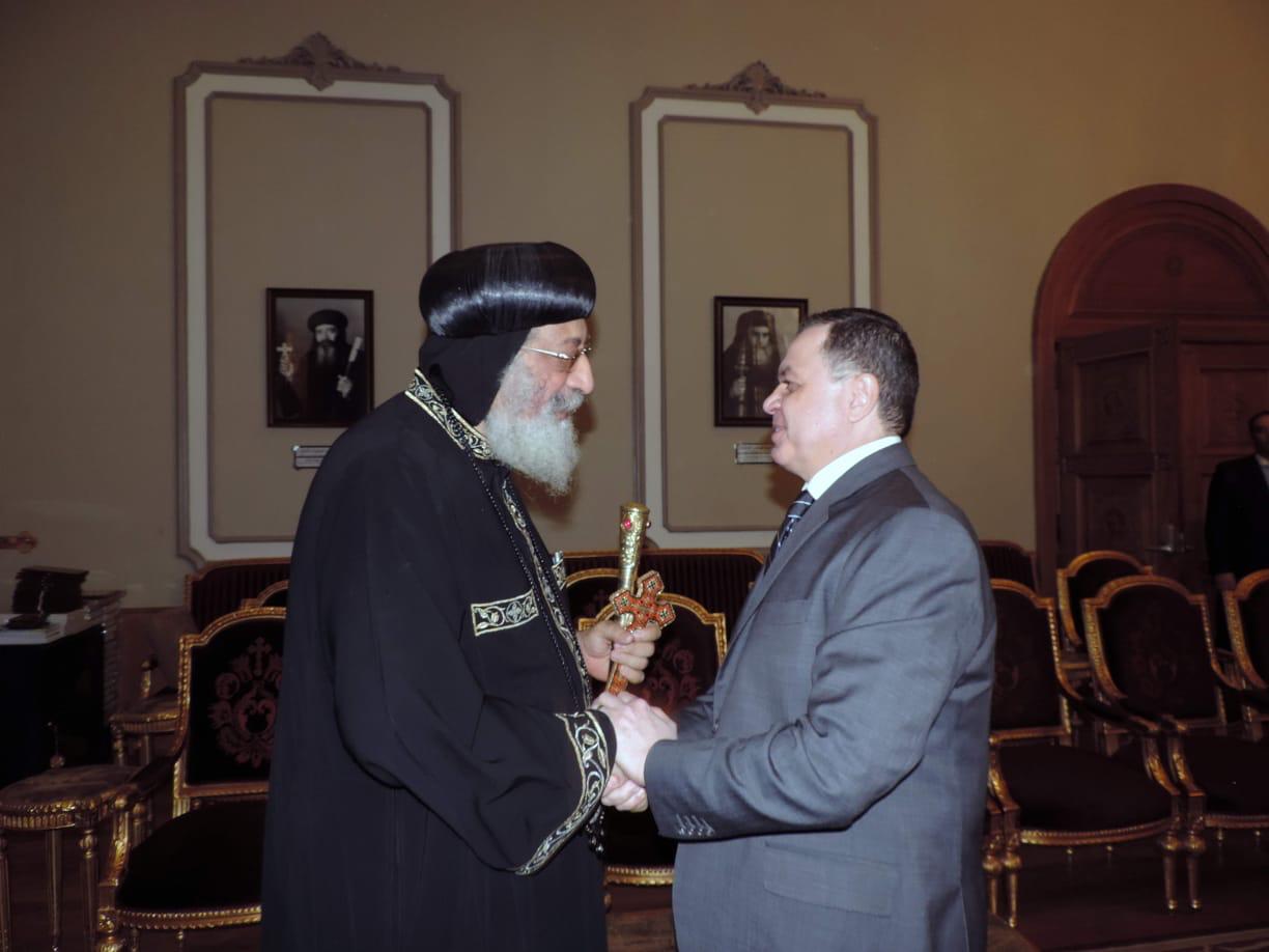( السيد محمود توفيق وزير الداخلية يقوم بزيارة البابا تواضرس الثانى لتقديم واجب العزاء فى شهداء الوطن )