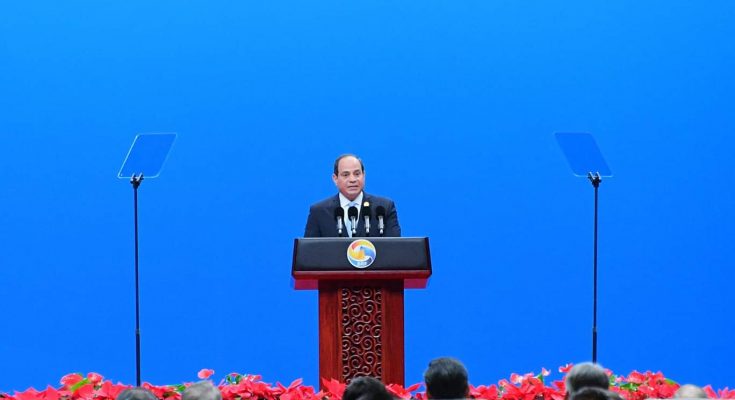 إن حرصي على تلبية دعوة صديقي فخامة الرئيس “شي جين بينج” للمشاركة في هذه القمة، إنما ينبع من اهتمام مصر بمبادرة الحزام والطريق، ولإيماننا بأن القواسم والتحديات المشتركة التي تجمعنا كدول أطراف فيها، جنباً إلى جنب مع الرؤية التي تأسست عليها المبادرة ومحاورها ومشروعاتها، ينبغي أن تشكل أسس التعاون بين أطرافها، بقصد تحقيق تطلعات شعوبنا ومصالح دولنا تجاه الاستقرار والتنمية.