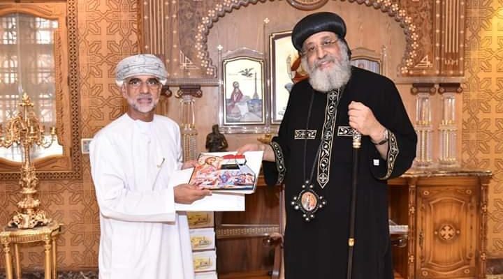 استقبل قداسة البابا تواضروس الثاني بابا الإسكندرية بطريرك الكرازة المرقسية، بالمقر البابوي بالكاتدرائية المرقسية بالعباسية، السفير الدكتور علي بن احمد العيسائي سفير سلطنة عُمان لدى مصر ومندوبها الدائم لدى جامعة الدول العربية. وقال القس بولس حليم المتحدث باسم الكنيسة القبطية الأرثوذكسية، في تصريح أدلي به أن قداسة البابا رحب بسفير سلطنة عمان ، متمنيا له التوفيق في مهام عمله. من جانبه أعرب السفير الدكتور علي العيسائي عن سعادته بلقاء البابا تواضروس الثاني بالمقر الباباوي مؤكدا أن لقداسته قيمة دينية كبري على مستوى العالم.
