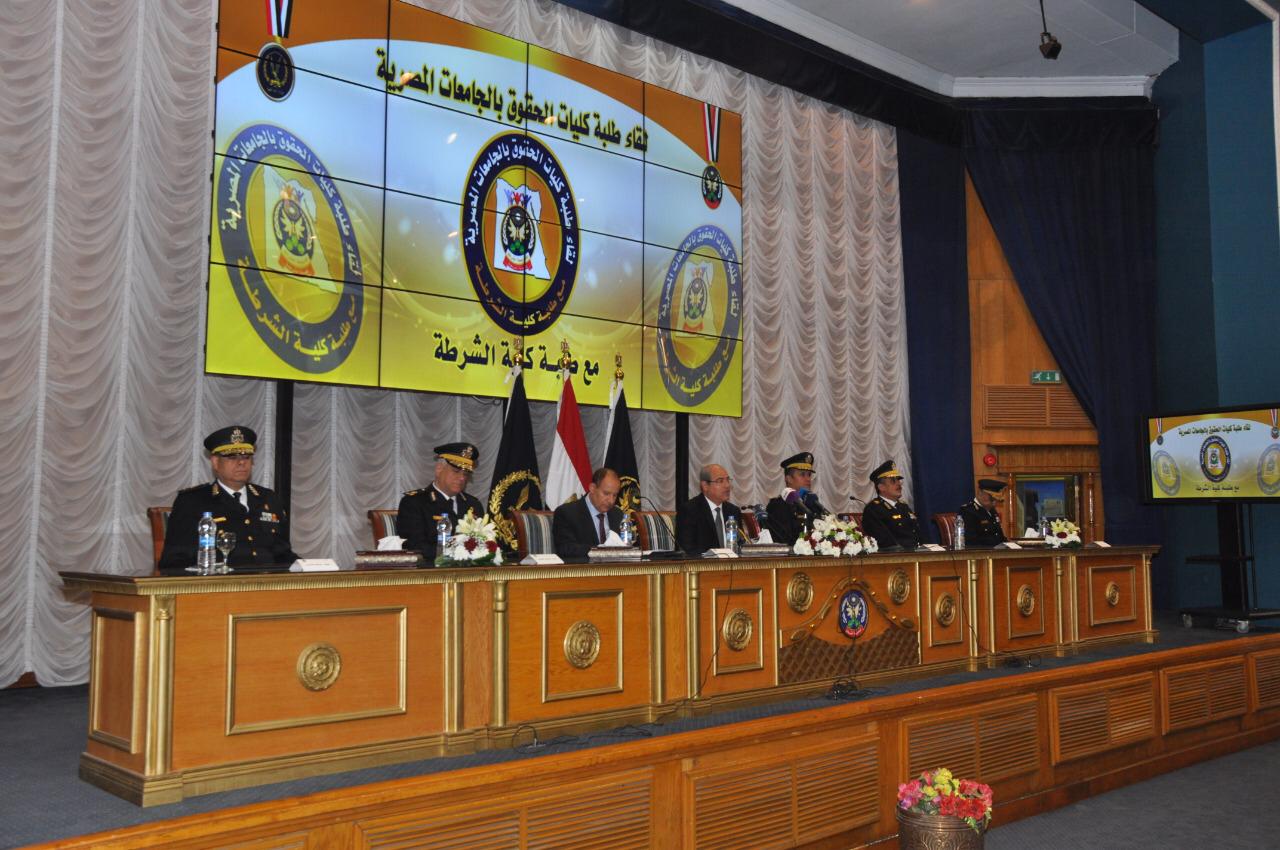 فى إطار مواصلة أجهزة وزارة الداخلية جهودها لتحقيق رسالة الأمن لاسيما الحرص على تحقيق الأمن الإجتماعى وتوطيد أواصر الترابط والدمج بين الشباب وتبصيرهم بالدور الحيوى لأكاديمية الشرطة فى إعداد وتأهيل ضابط شرطة عصرى، وغرس السلوكيات الإيجابية والوعى الأمنى لديهم، من خلال تنظيم زيارات لطلبة الجامعات أو إستضافتهم بالمواقع الشرطية للتعرف على دور رجال الشرطة فى تحقيق رسالة الأمن.. فقد نظمت أكاديمية الشرطة بالتنسيق مع قطاع الإعلام والعلاقات الملتقى الأول لطلاب كليات الحقوق من الجامعات المصرية (الحكومية والخاصة)، قضوا خلاله يوماً دراسياً مع أشقائهم طلبة كلية الشرطة من خريجى كليات الحقوق.. حيث حرص السيد/ مساعد الوزير – رئيس أكاديمية الشرطة وقيادات الأكاديمية على إستقبال الطلاب والترحيب بهم، ونقل تحيات السيد/ وزير الداخلية لهم وإهتمام ودعم سيادته البالغ لتلك المبادرات لاسيما التقارب مع شباب الجامعات المصرية.