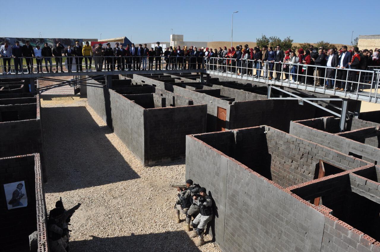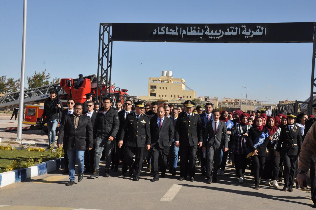 وقد تم عرض فيلم تسجيلى عن أنشطة أكاديمية الشرطة، أعقبه جولة بالأكاديمية شملت أهم المنشآت التدريبية المتمثلة فى القرية التكتيكية وميادينها المختلفة، وعرض الكفاءة القتالية والبدنية وبيان عملى فى عمليات الإخفاء والتمويه فى بيئات مختلفة، ومهارات الرماية والأسلحة، وكذا تفقد ميادين التدريب الفنى الأمنى على التخصص الوظيفى بنظام المحاكاة والقرية المرورية، ومشاهدة التدريبات على السباحة وقفزة الثقة بحمام السباحة الأوليمبى، ثم مشاهدة عروض الخيالة ورياضة الكلّة وعروض مميزة لكلاب الأمن والحراسة.