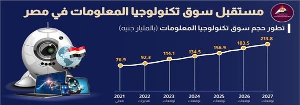 توقعت وكالة فيتش سوليوشنز زيادة حجم سوق تكنولوجيا المعلومات بمصر رغم الأزمات التي يعانيها العالم حاليًّا، ليبلغ 213.8 مليار جنيه فى عام 2027، مقارنة بنحو 77 مليار جنيه فى 2021.