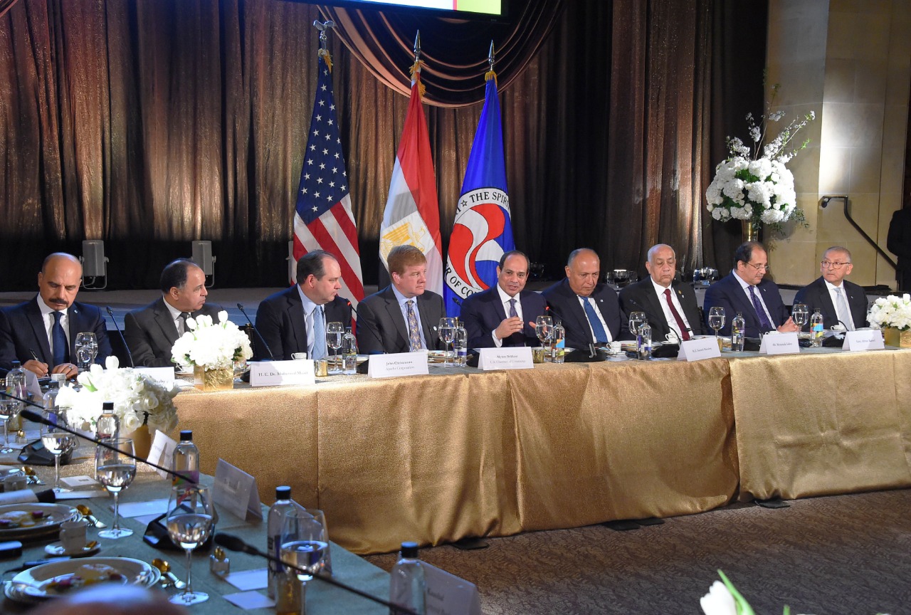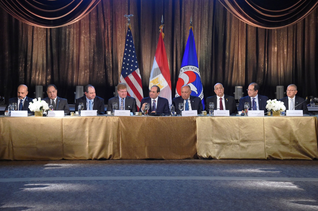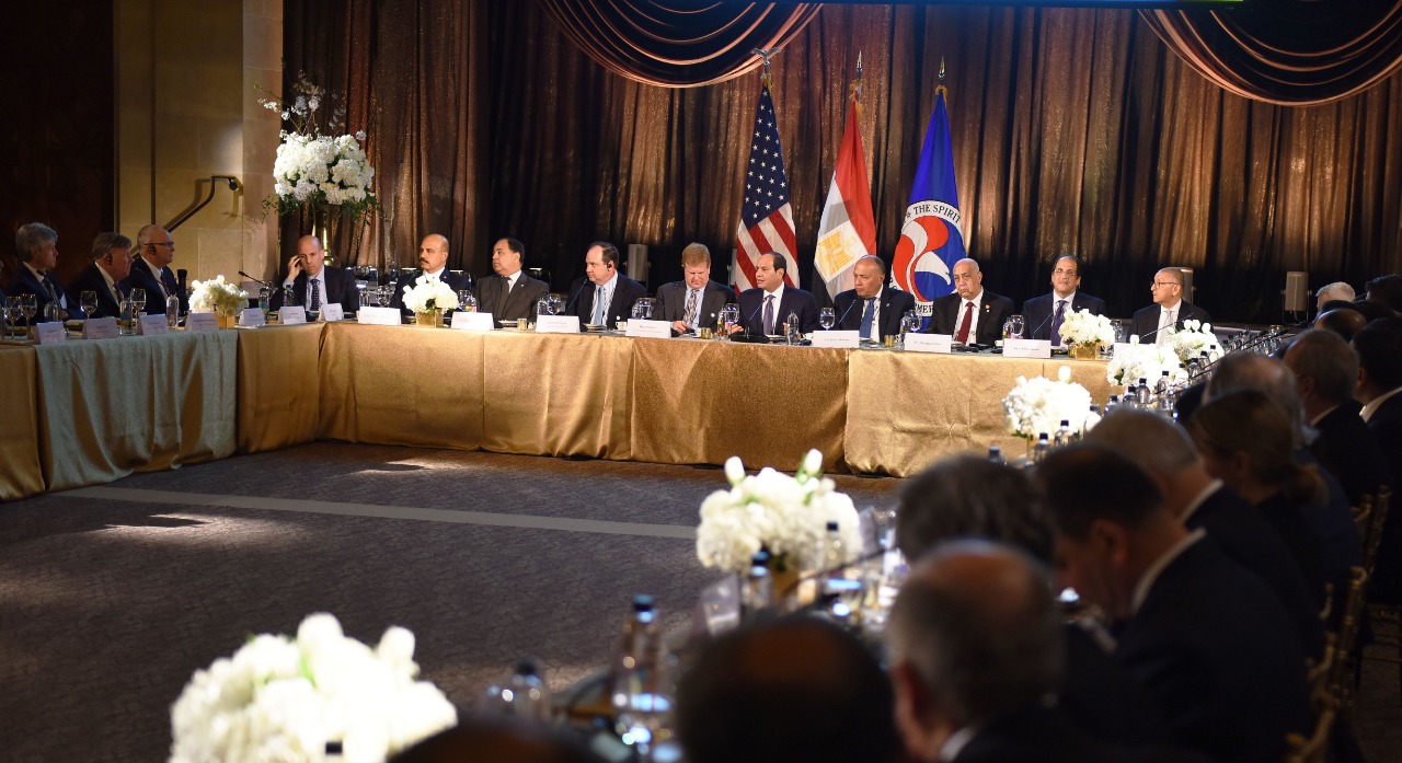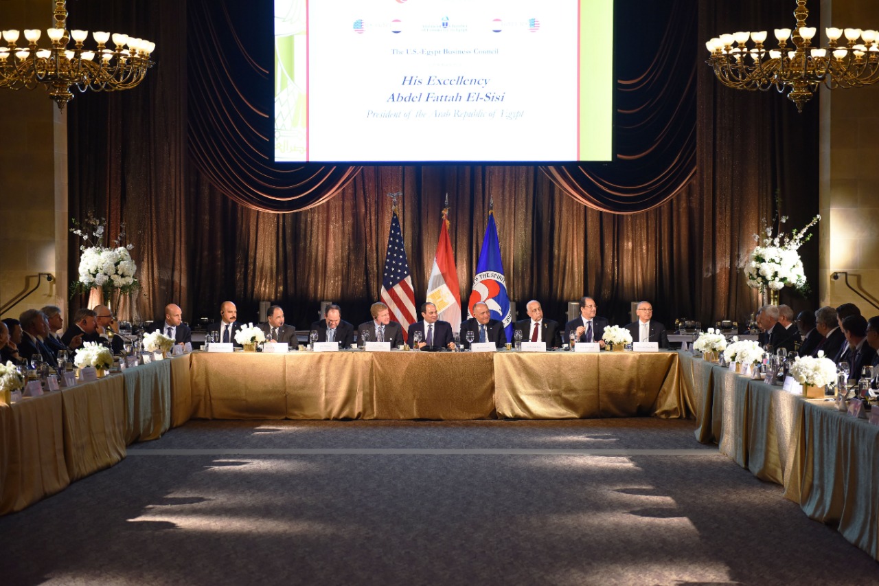 وصرح السفير بسام راضي، المتحدث الرسمي باسم رئاسة الجمهورية، بأن العشاء شهد حواراً مفتوحاً مع ممثلي قطاع الأعمال الأمريكي الحاضرين، والذين أبدوا اهتماماً بالعمل فى مصر أو التوسع فى مشروعاتهم القائمة، حيث أكد السيد الرئيس حرص مصر على التواصل المستمر مع المستثمرين للتعرف على المشاكل والمعوقات التي تواجههم والعمل على حلها وتذليل كافة العقبات أمامهم، معرباً سيادته عن تقديره للدور الذي تقوم به غرفة التجارة الأمريكية ومجلس الأعمال المصري الأمريكي في دعم العلاقات الاقتصادية والتجارية بين مصر والولايات المتحدة، ومشيراً إلى أهمية دور القطاع الخاص في هذا الإطار كقاطرة للنمو من خلال زيادة الاستثمارات ونقل المعرفة والخبرات بما يخدم المصالح المشتركة للبلدين.