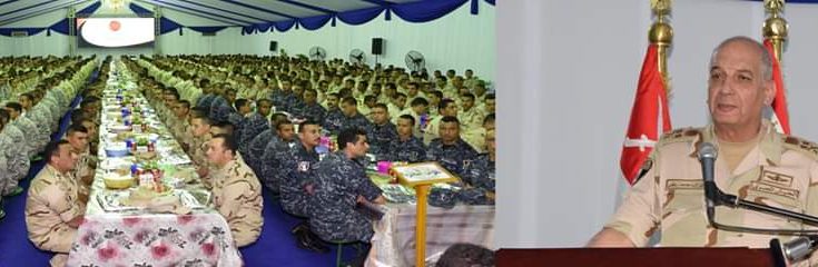حيث بدأ اللقاء بالوقوف دقيقة حداد على أرواح شهداء الوطن الأبرارالذين ضحوا بأرواحهم الطاهرة دفاعاً عن أمن مصر وسلامتها ، ونقل القائد العام تحيات وتهنئة السيد الرئيس / عبد الفتاح السيسى القائد الأعلى للقوات المسلحة لرجال القوات المسلحة بمناسبة شهر رمضان المعظم ، مشيداً بما يبذلونه من جهود وتضحيات للدفاع عن أمن الوطن وإستقراره والحفاظ على سلامة أراضيه .